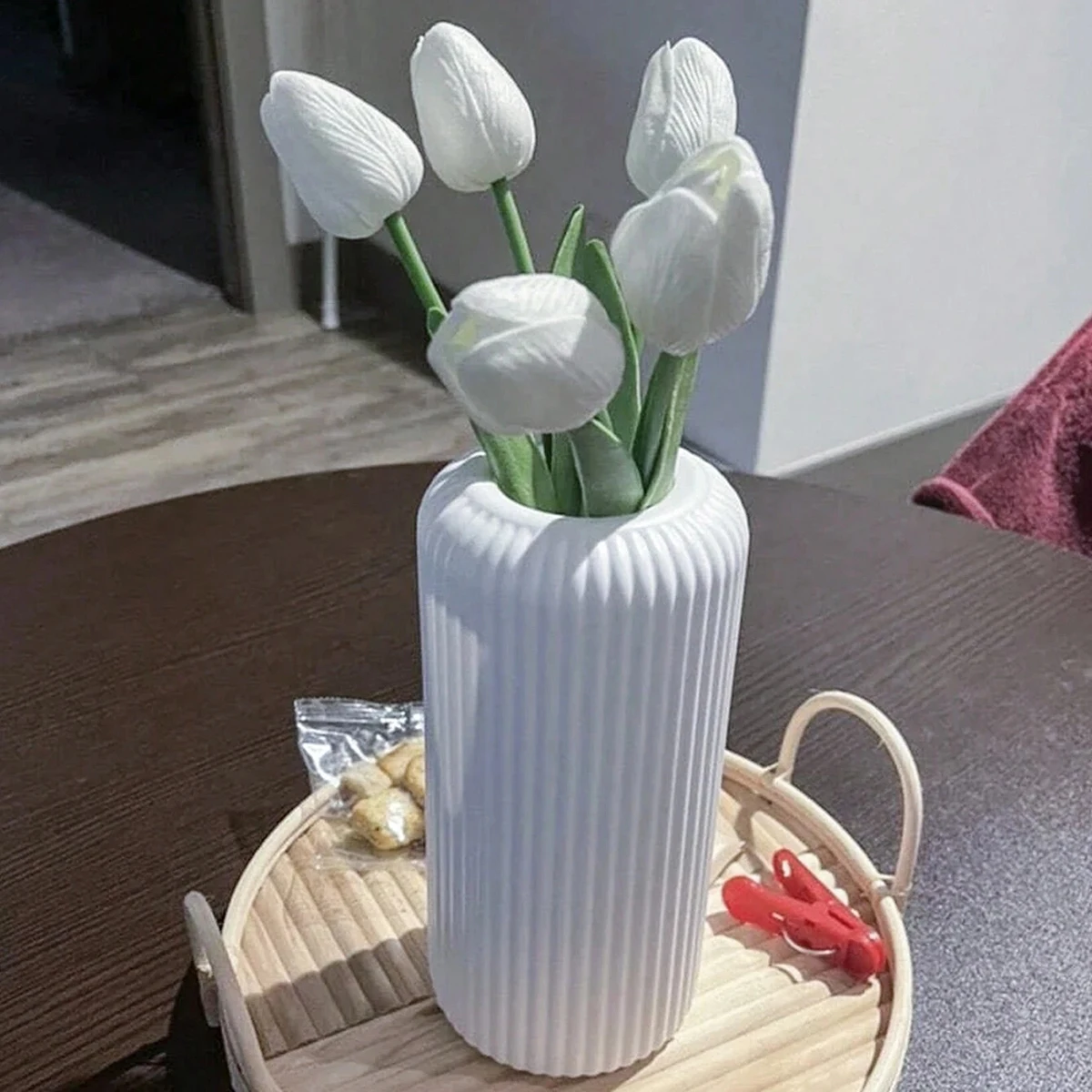 Striped Ceramic-Like Plastic Vase for Flowers, Decorative Floral Arrangement Display, Creative Little Flower Vase