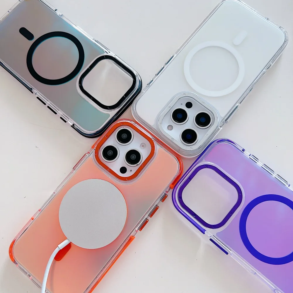 Stylish Metal Lens Magnetic Phone Case for IPhone 17 16 15 14 13 12 11 Pro Max Plus MagSafe Wireless Gradual Change Color Cover
