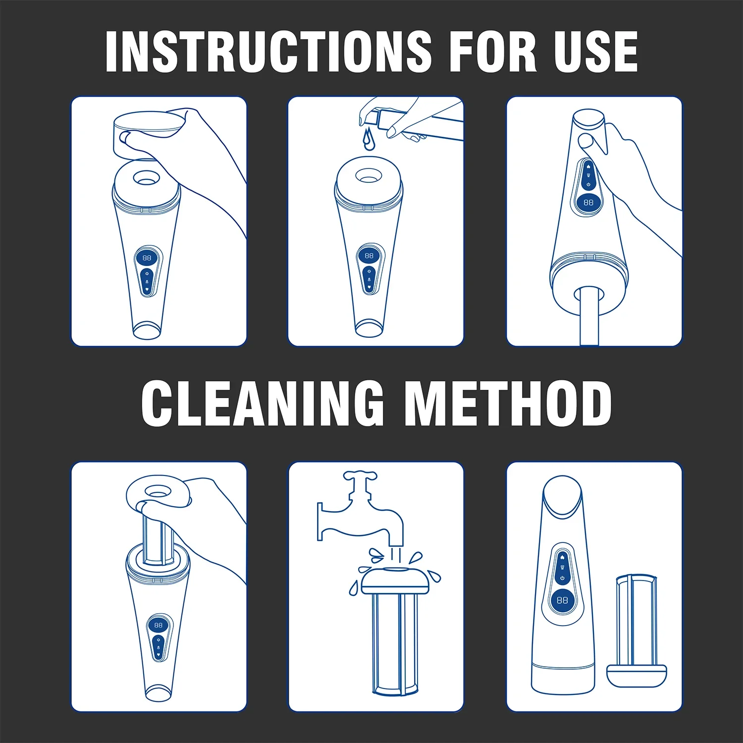 【Easy Clean Men Sex Toys】Male stroker can accommodate different sizes, due to the ultra-soft and flexible TPE. Like all tools of masturbator, lubrication may be required go get the perfect enjoyment. Male sex toys has a removable sleeve, just separate the motor from sleeve and rinsed under running water, or put our adult sex toys in warm water and add some mild soap to clean, then let it dry.