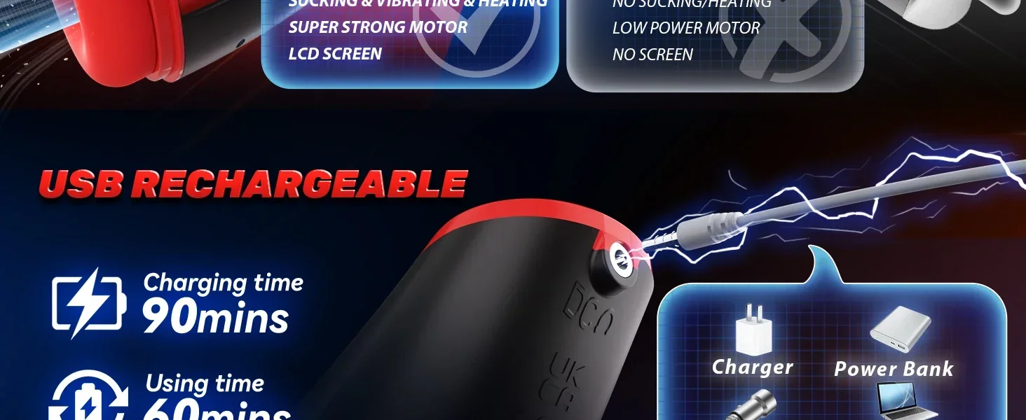 【Upgraded Heating Male Masturbator】Unlike the traditional men sex toys, our adult toys has a button heating function, male masturbator can heat up to 104°F/40°C, and offers you a warm pleasure! Turn it on before hand, leave it on for 8-10 mins to get ideal warm. Enjoy up to 60 minutes of sex toys for men on a 120-minute charge.