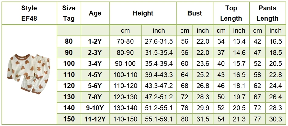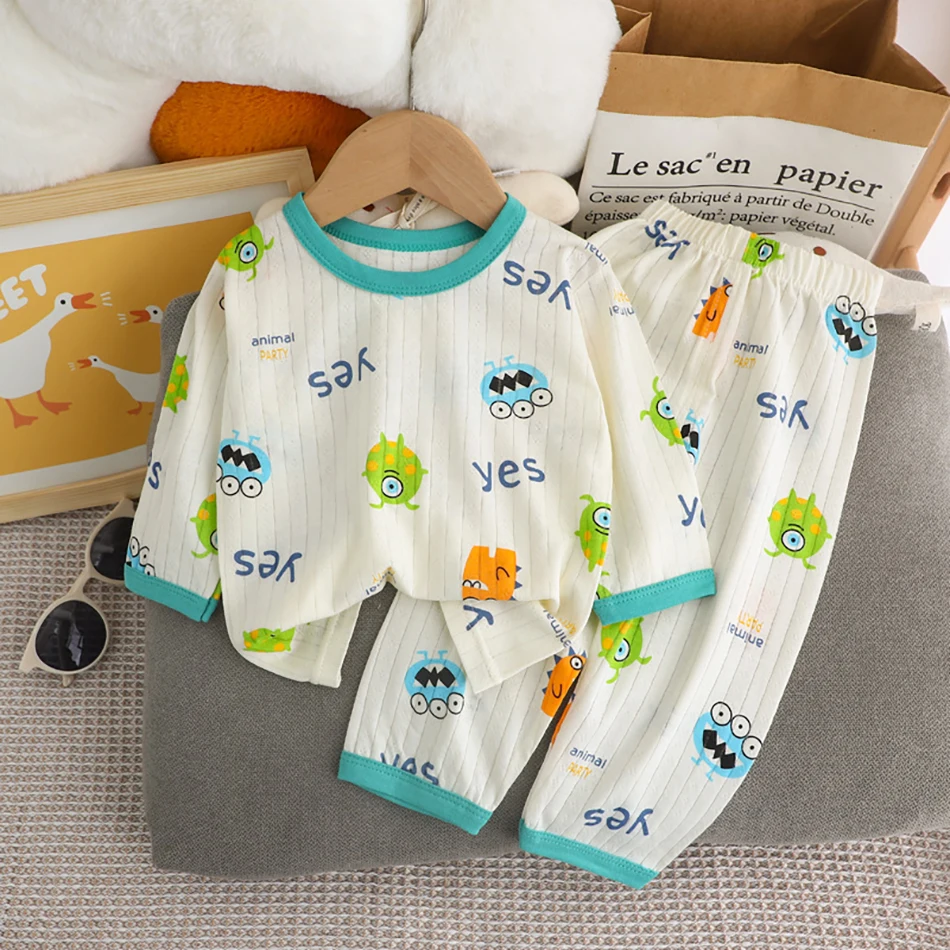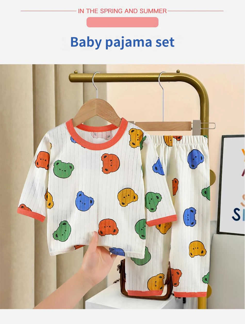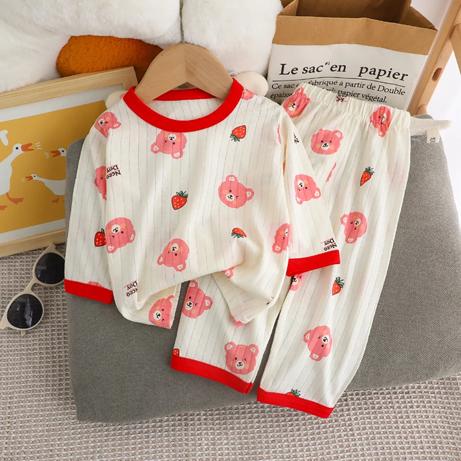 Name: Summer Kids Cotton Long Sleeve and Pants Pajamas Set Soft Breathable Baby Sleepwear Cartoon Bear AC Room Wear Boys Girls Clothes