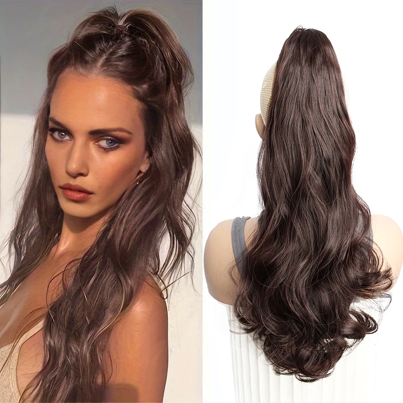 20Inch Synthetic Long Curly Ponytail Heat-resistant Claw Clip in Hair Extension Black Brown Hairpiece for Women