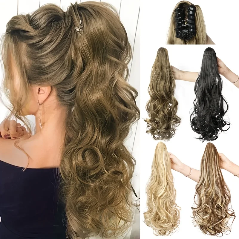 Synthetic Long Curly Wavy Ponytail Hair Extension Claw Clip in Ponytail Hairpiece for Women