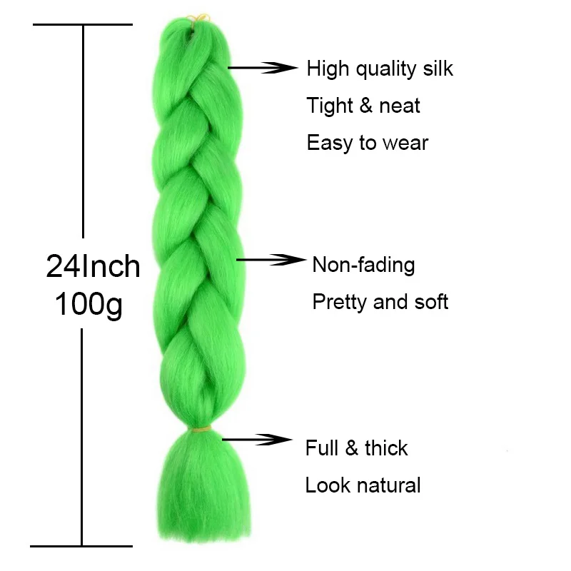24Inch Synthetic Braiding Hair Extension Ombre Color Rainbow DIY Jumbo Hair Pink Red Blue Hairstyle for Women