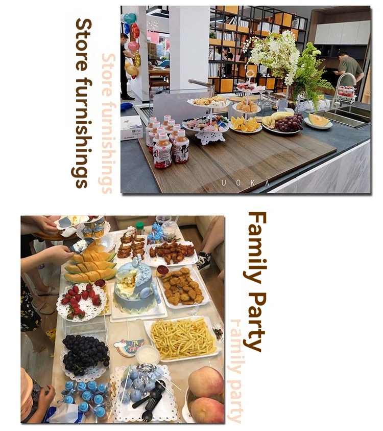 • Three-Layer Design :The fruit plate boasts a three-layer design, providing ample space for arranging your favorite fruits, candies, and desserts.
