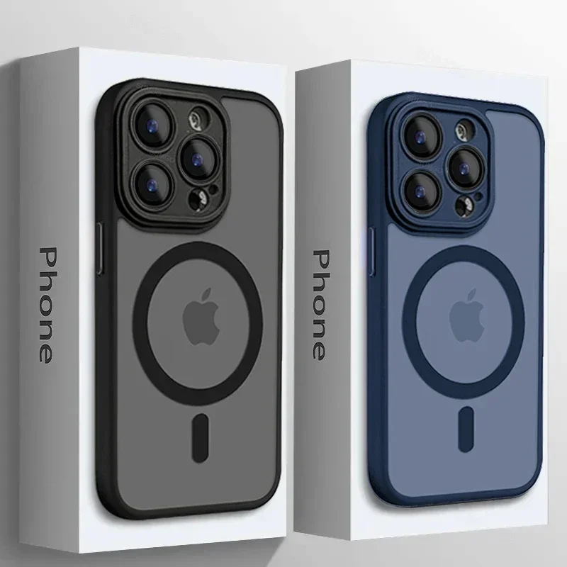 Translucent Original Case For iPhone 15 16 14 13 11 12 Pro Max For Magsafe Magnetic Wireless Charge Lens Protector Matte Cover