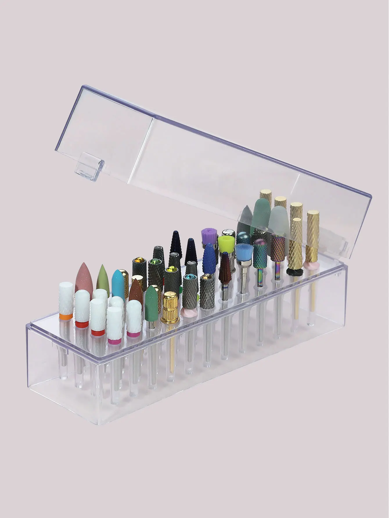 Transparent 48holes Nail Drill Bits Storage Box Empty Clear Box Nail Drill Display Stand Manicure Accessoy Tools