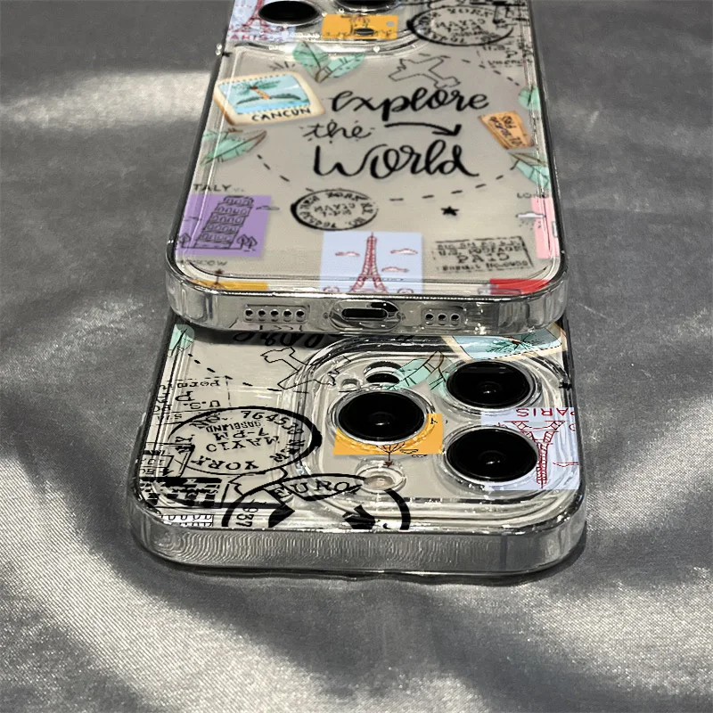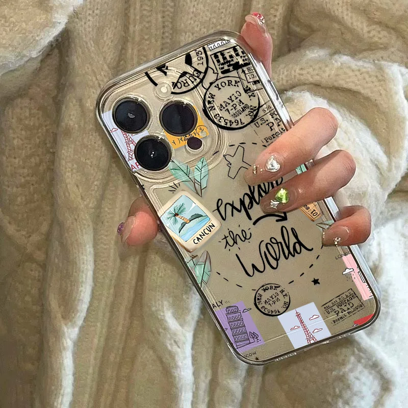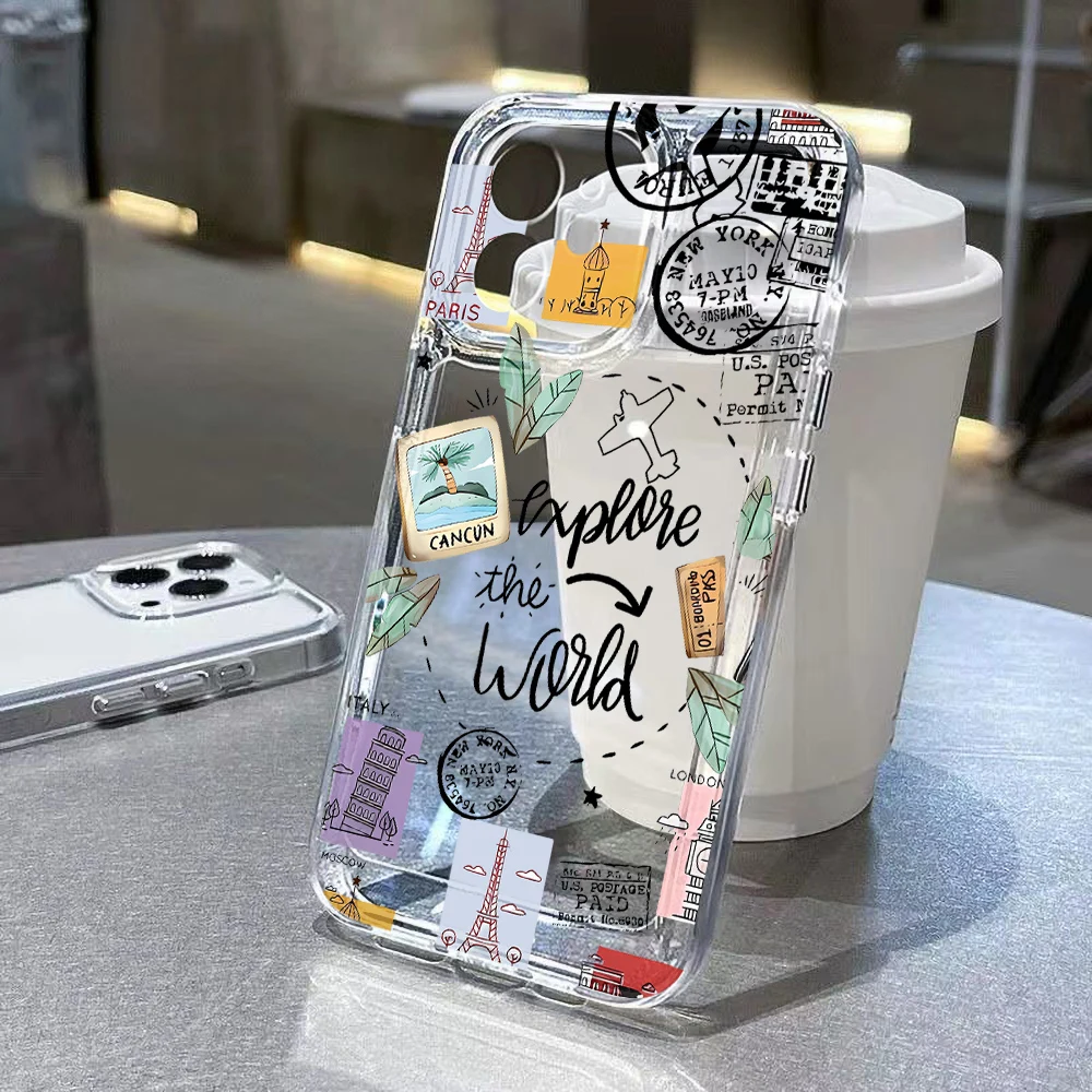Transparent Phone Case For iPhone 11 13 16 15 12 14 Pro Max 16e XR XS X 8 7 Plus SE Travel-Inspired Airplane Route Design Cover