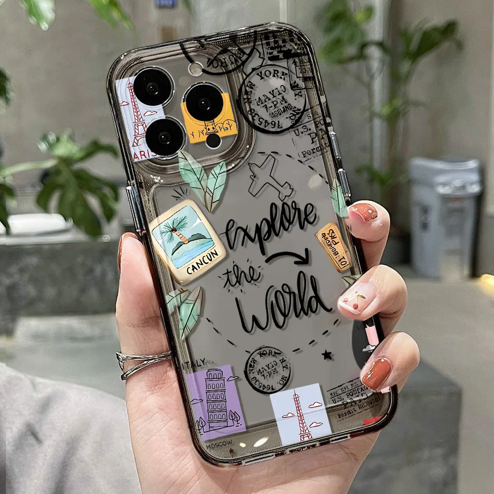 Transparent Phone Case For iPhone 16 Pro 13 17 14 11 12 15 Pro Max 16e XR 7 Plus SE Travel-Inspired Airplane Route Design Cover