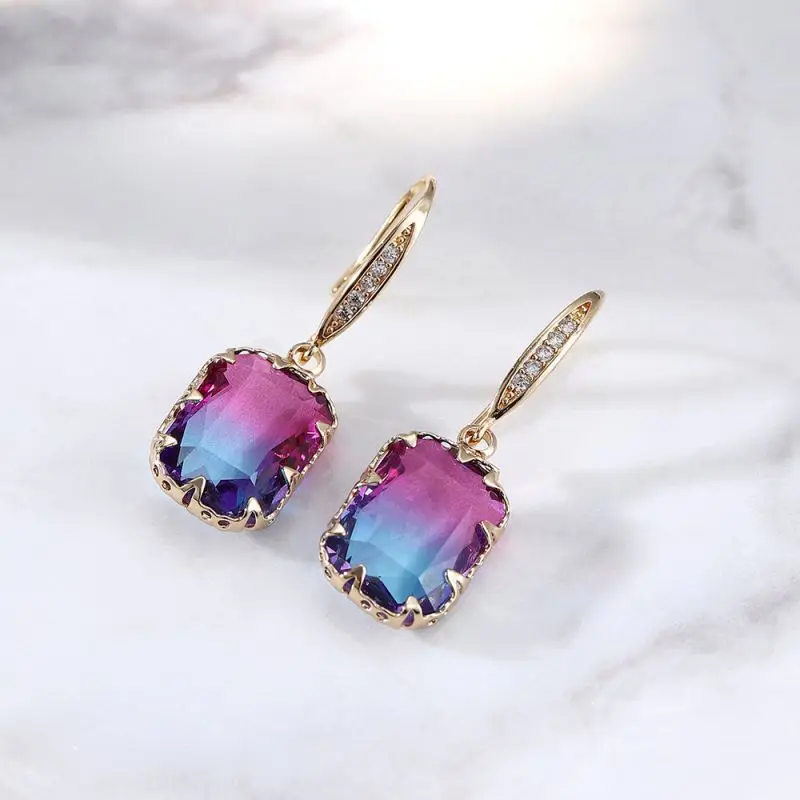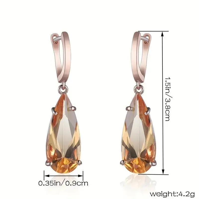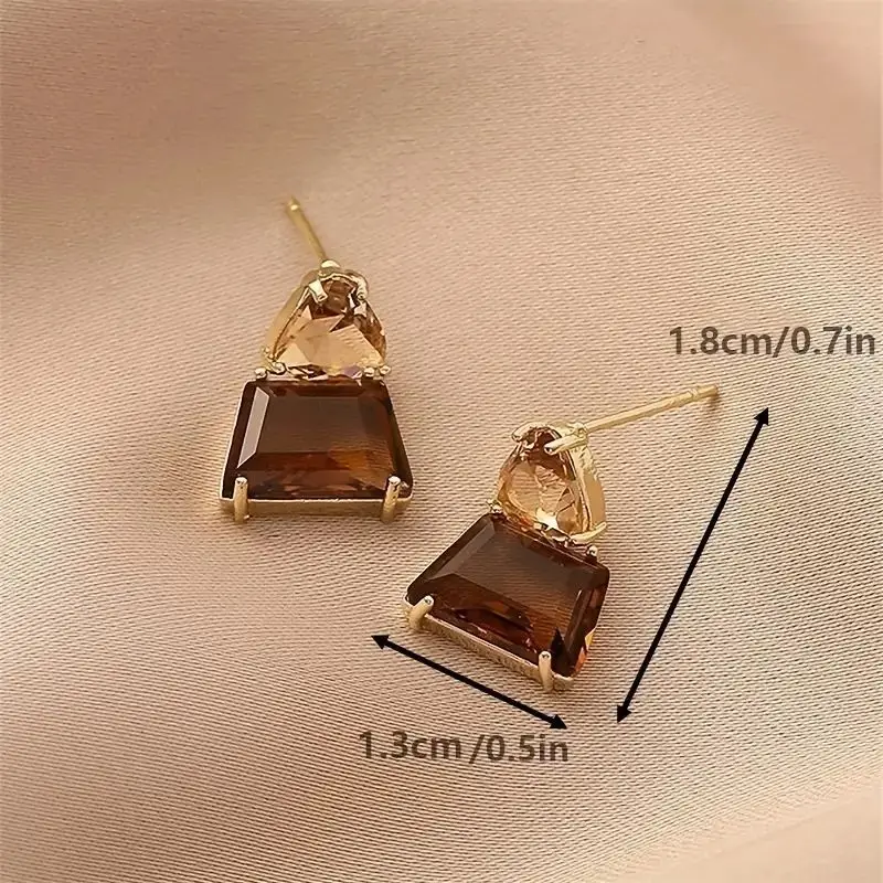 Trendy Cubic Zirconia Copper Drop Earrings For Women Girls Brown Crystal Pendant Earring Party Birthday Daily Jewelry