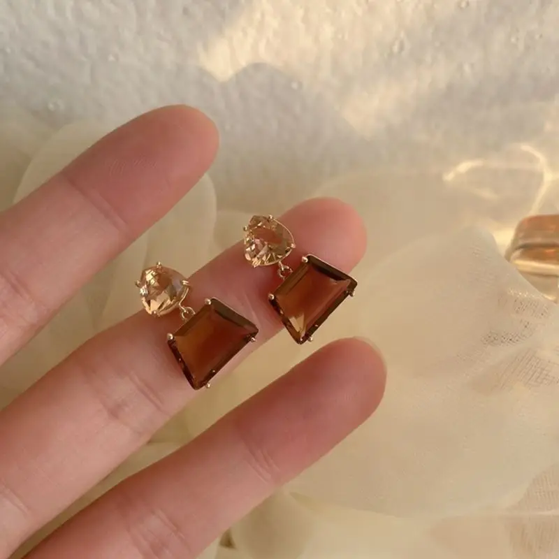 • Brown Crystal Pendant :Featuring a brown crystal pendant, these earrings add a touch of nature to your outfit, adding a dash of warmth and charm.