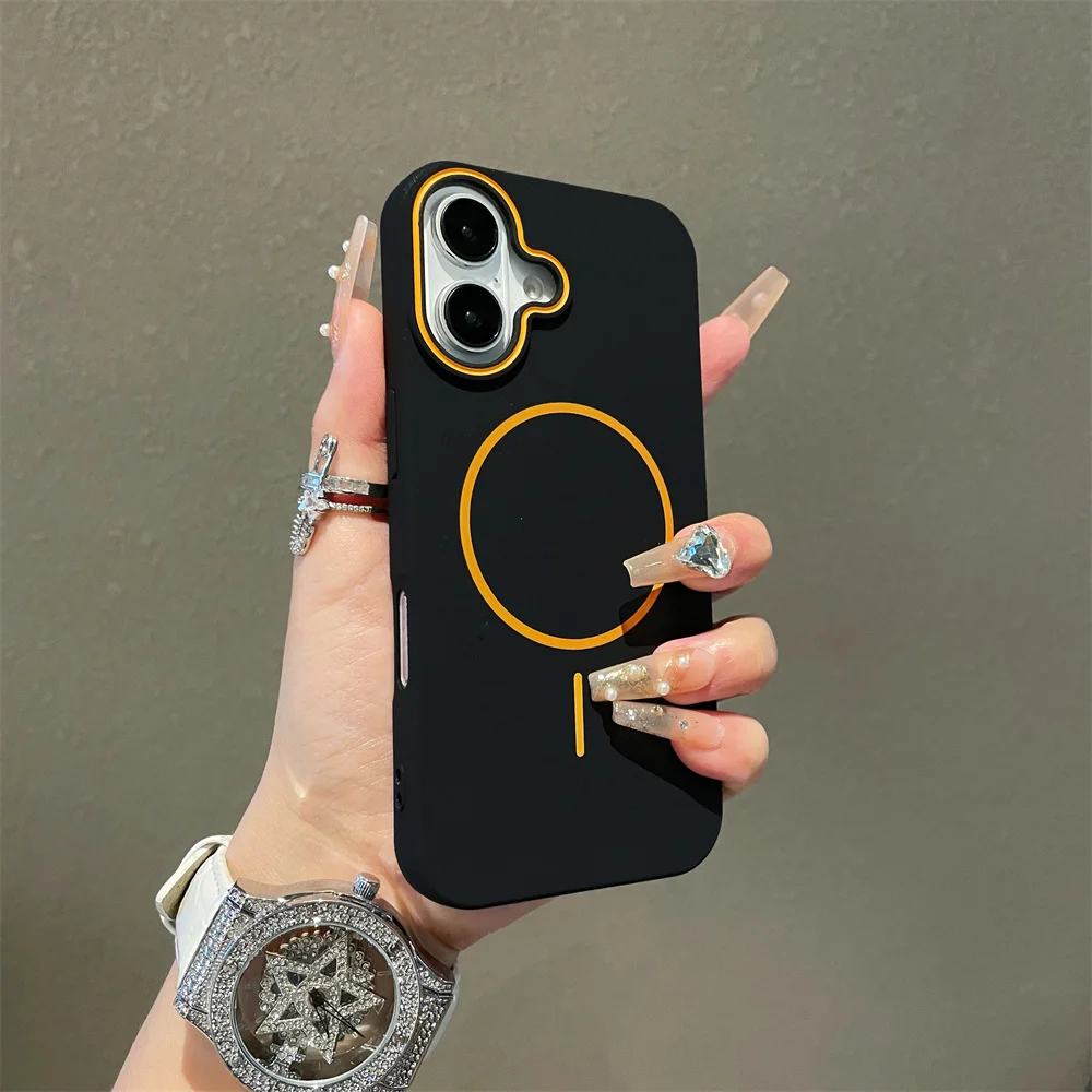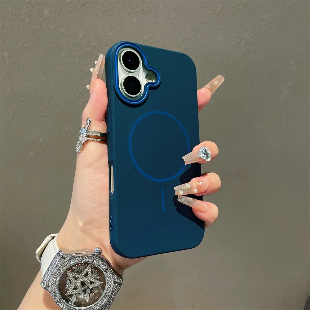 Ultrathin Simple Magsafe Case for iPhone 16 Pro Max 15Pro 14 Plus 13 12 11 Matte Hit Color Lens Wireless Charging Soft TPU Cover