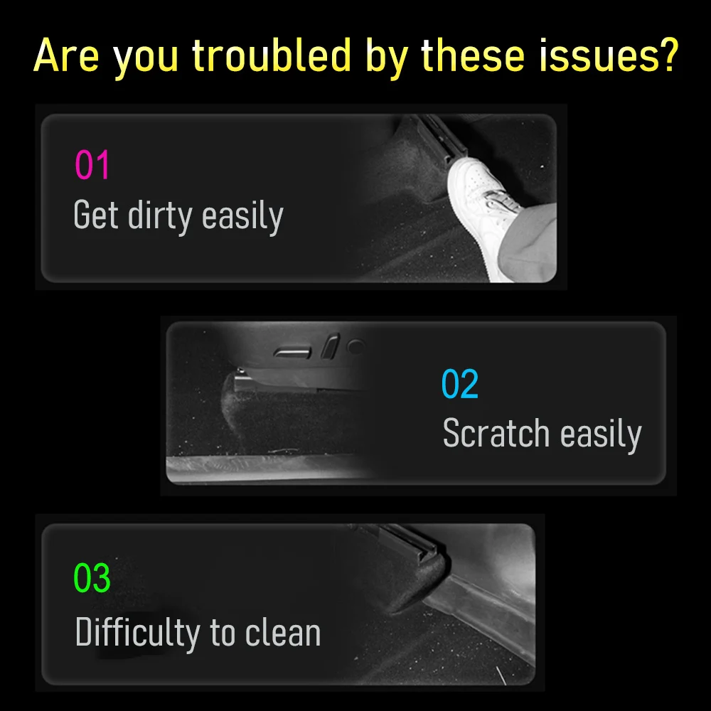 It can protect the under seat & door sill from scratches, abrasion, kicks and stains. Prevents scratches and keeps the body of the car clean;