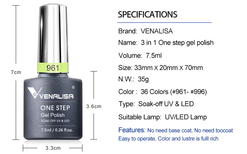 Venalisa 3 in 1 Nail Manicure 7.5ml One Step Nail Gel Polish Soak Off Enamel Gel Polish UV Gel Nail Polish Lacquer Varnish