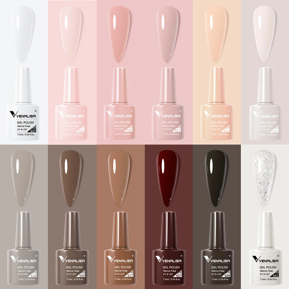 Venalisa Gel Nail Polish 6/12pcs/Set Color Rubber Base Jelly Pink Natural Color Series Nude Collection VIP Kit Neon Summer Gel