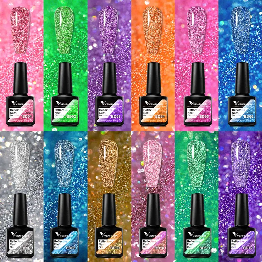 12pcs/kit Venalisa Reflective Sparkle Frash Nails Gel Polish Glitter Color French Nail Art Gel Pigment Soak Off UV LED Nail Art Manicure