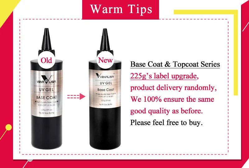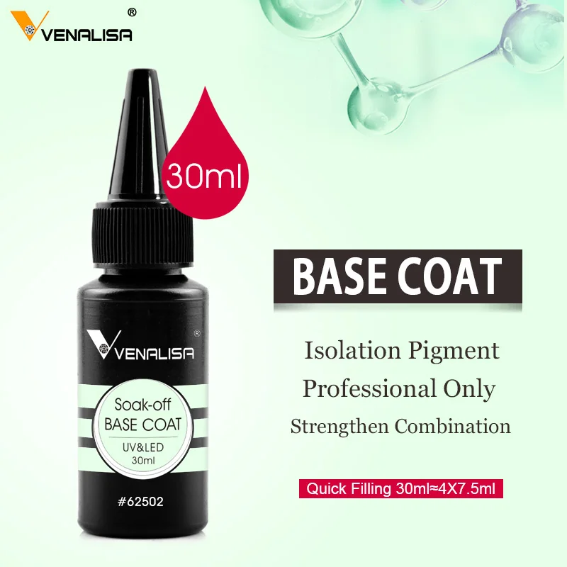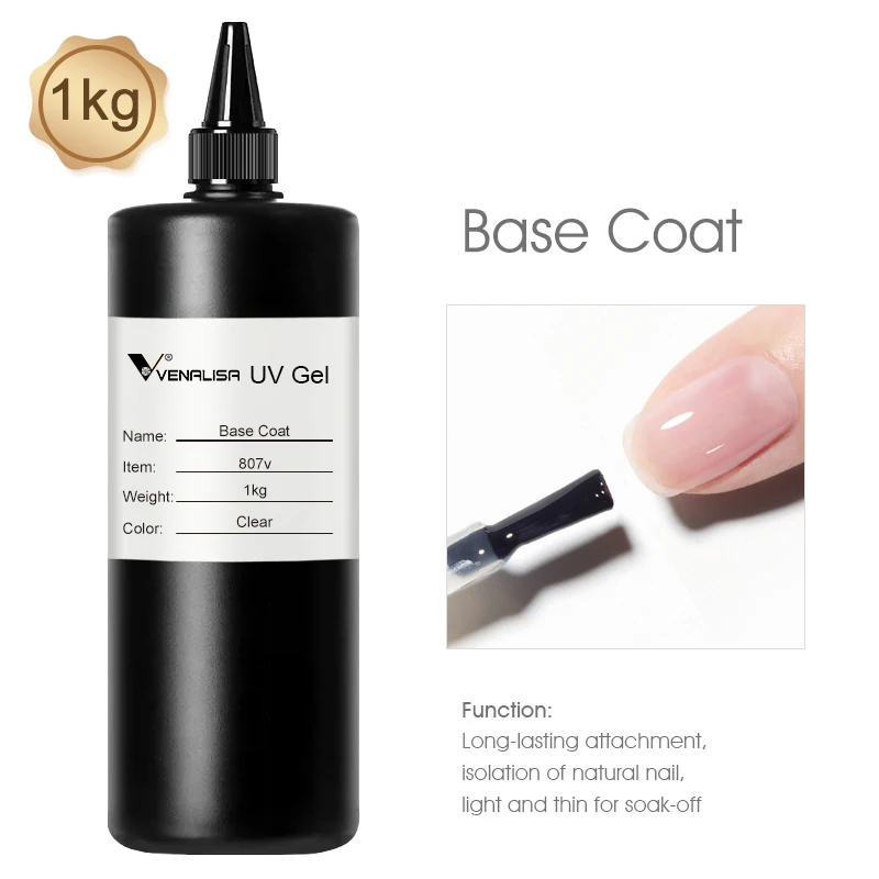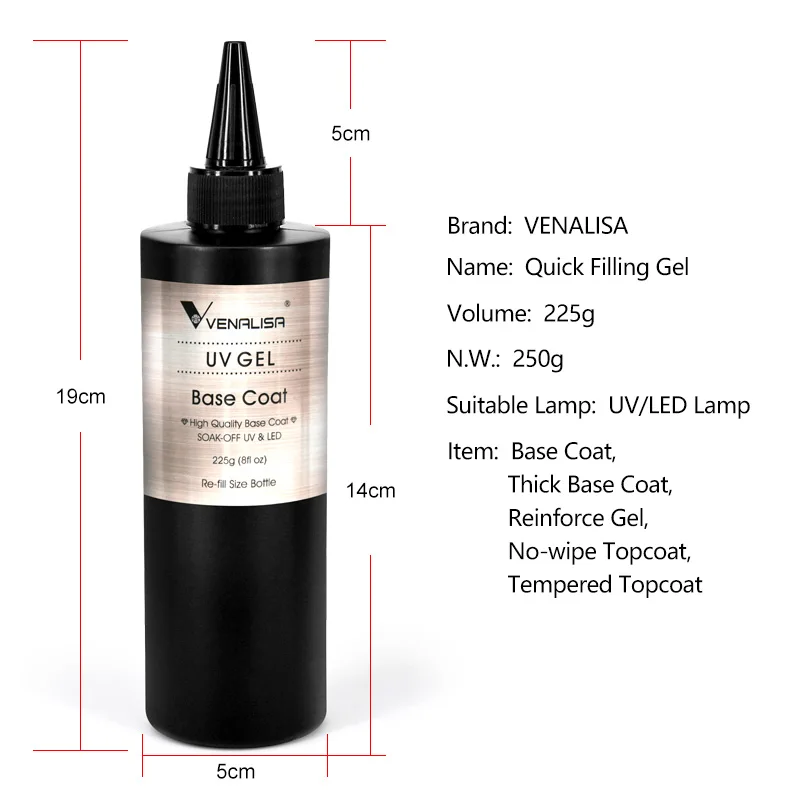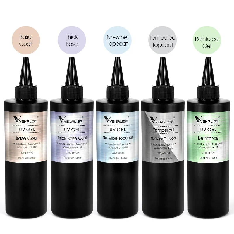 Venalisa Long Wear Tempered Top Coat Reinforce Gel Refill Package Soak Off UVLED Nail Gel Polish Big Volume 225g/30ml Base Gel