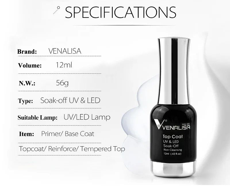 Venalisa TPO FREE Tempered Top Coat Nail Paint Gel Platinum Gel Polish Nail Soak Off UV LED Gel Polish Nail Lacquer Varnishes