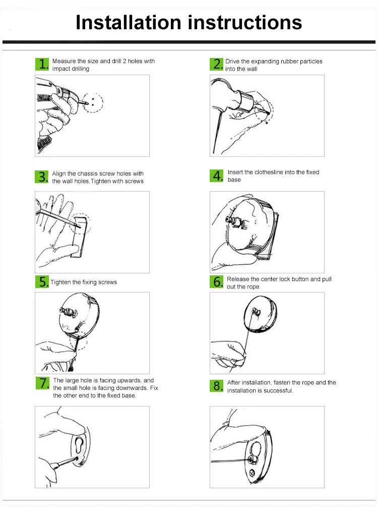 2. Comes with installation screw accessory, the retractable clothesline is easy to install and great for hotel and home use.