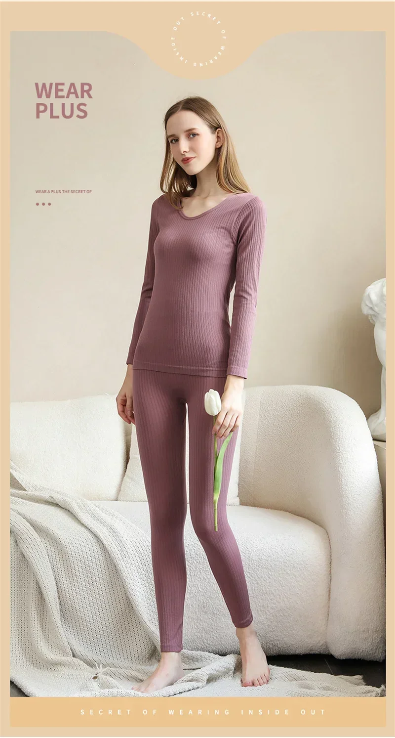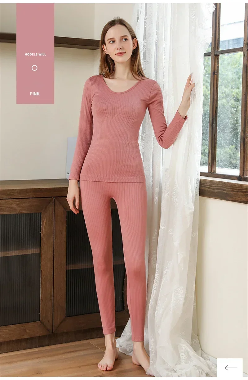 Warm Women’s Thermal Underwear Sexy Ladies Intimates Long Johns Women Shaped Sets Female Middle Collar Thermal Shaping Clothes