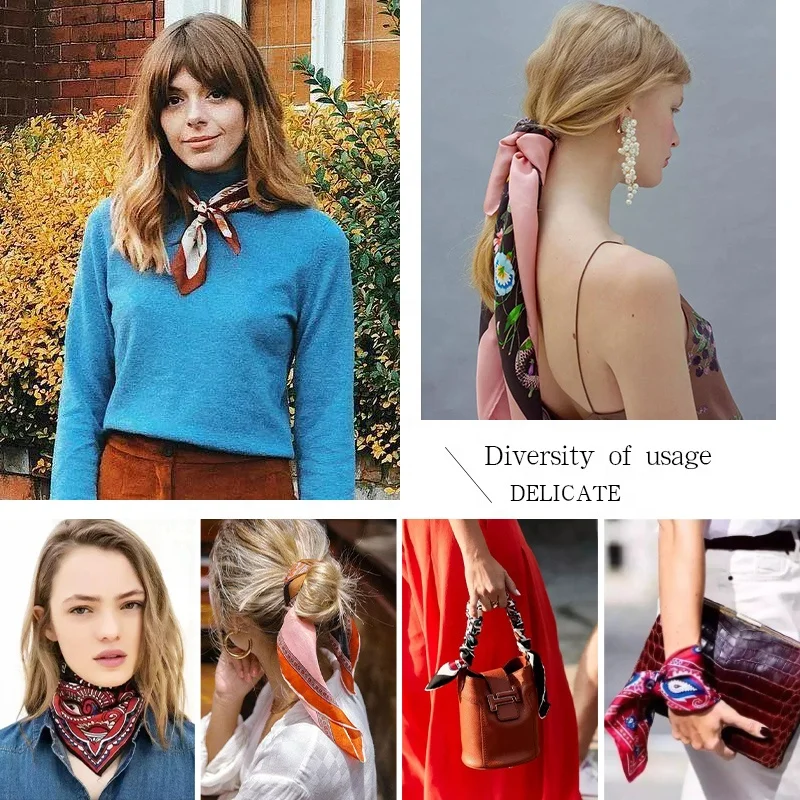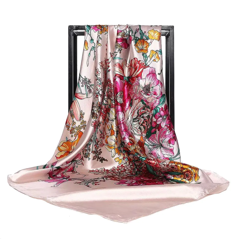 Women Spring Summer Square Scarf 90*90cm Satin Silk Scarves Headscarf Female Foulard Beach Bandana Ladies Neckerchief Hair band