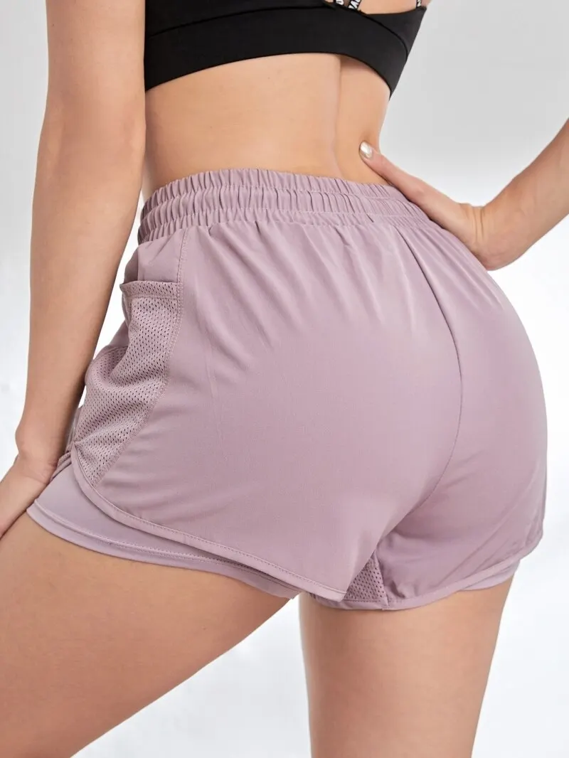 Women’s Elastic Sports Shorts, Shorts With Pockets, Fake Two-Piece Yoga Leggings Running And Training