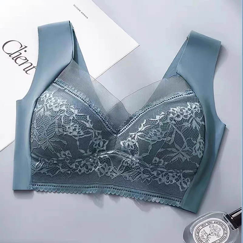 Womens Lace Bra Perspective Bralette Push Up Ice Silk Deep V Bra Sexy Lingerie Tops Plus Size Cup Mom’s underwear L-5XL