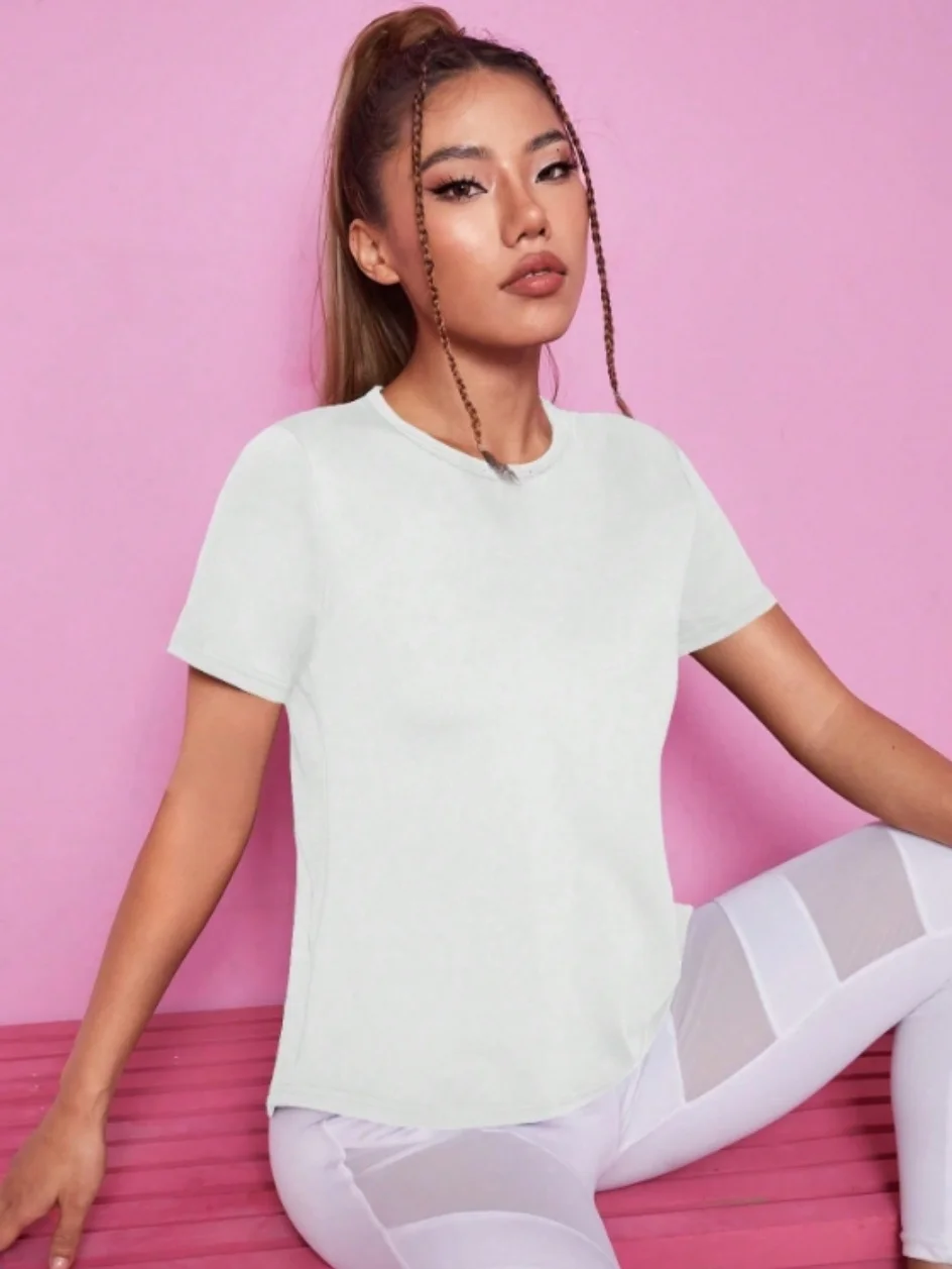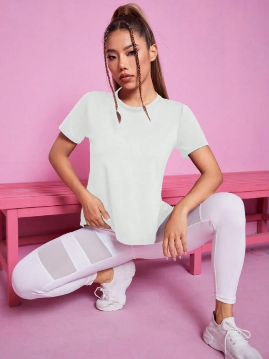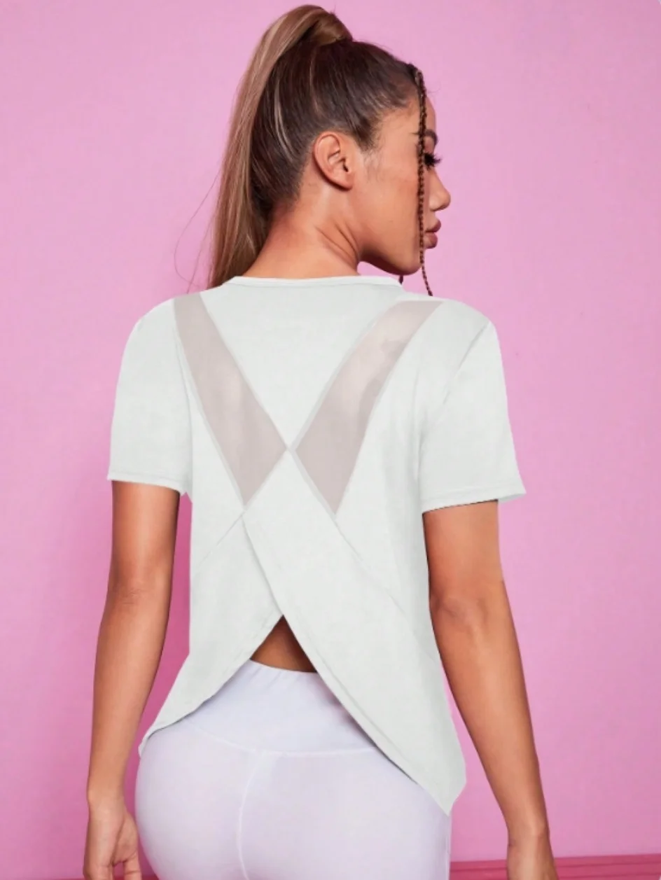 Yoga outfit women’s summer sports T-shirt loose breathable quick drying top mesh back training fitness short sleeved