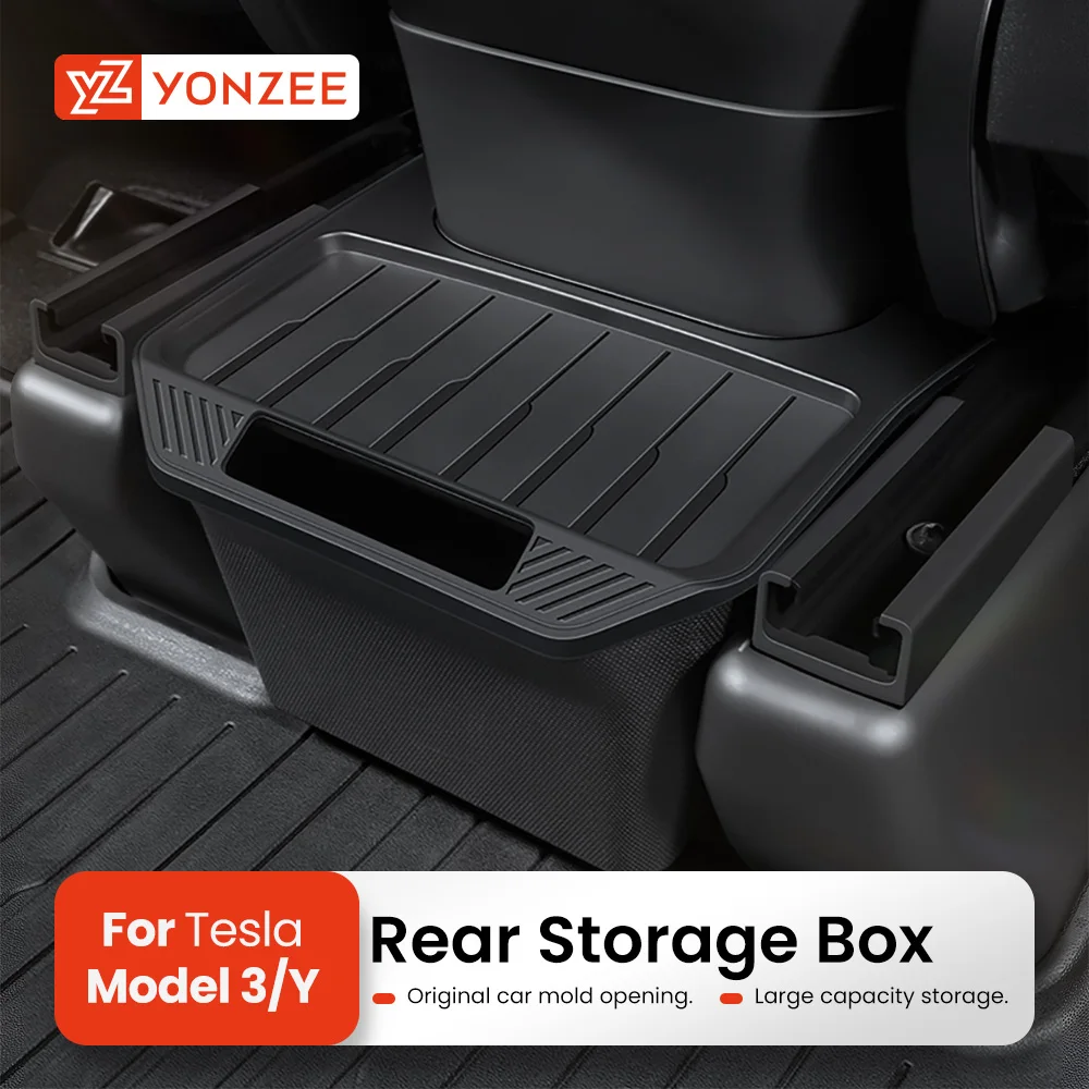 YZ For Tesla Model Y 2021-2025 Juniper Under Seat Storage Box Drawer Holder Car TPE Organizer Rear Seat Trash Can Accessories