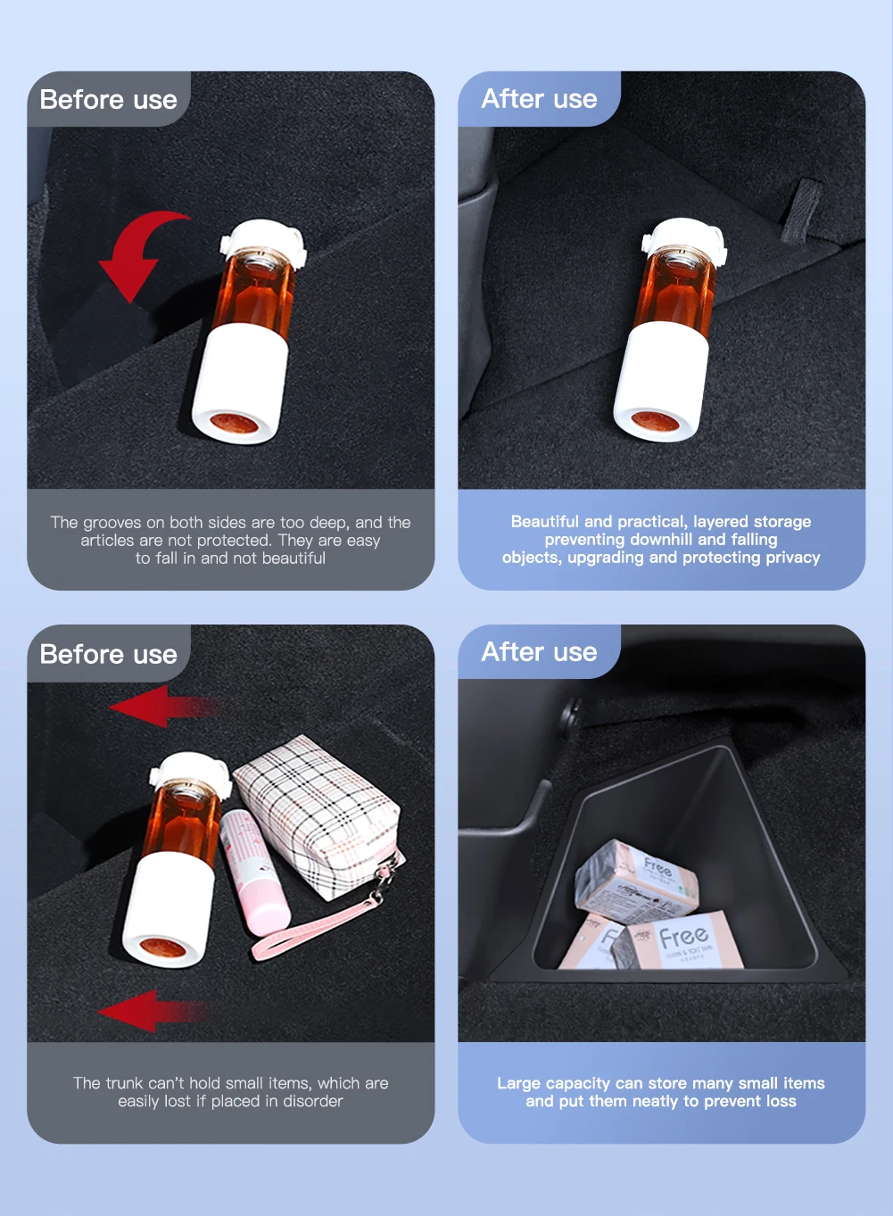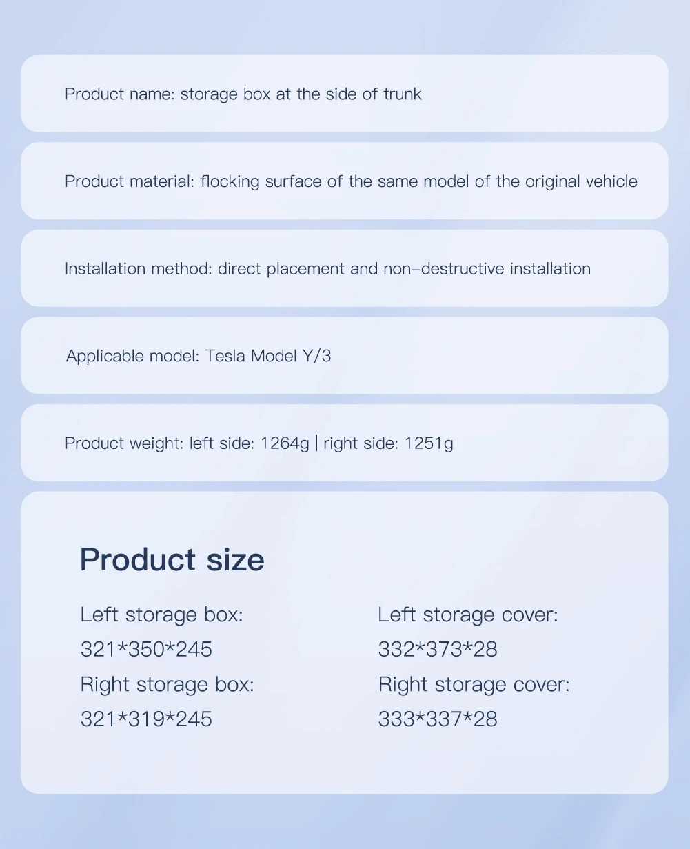 package include :2pcs Left and Right Rear Trunk Side Storage