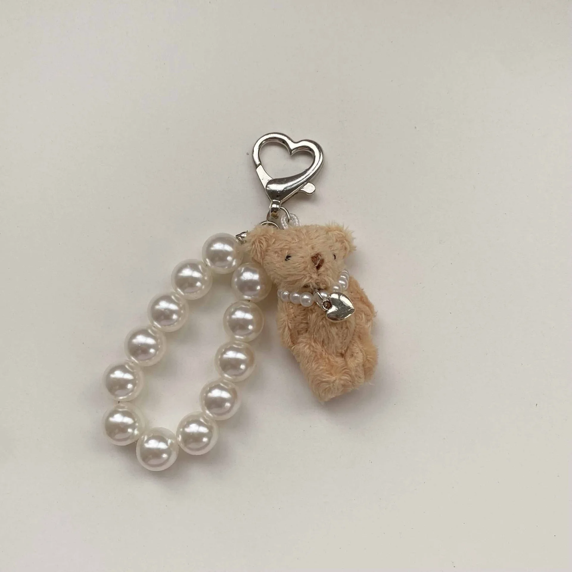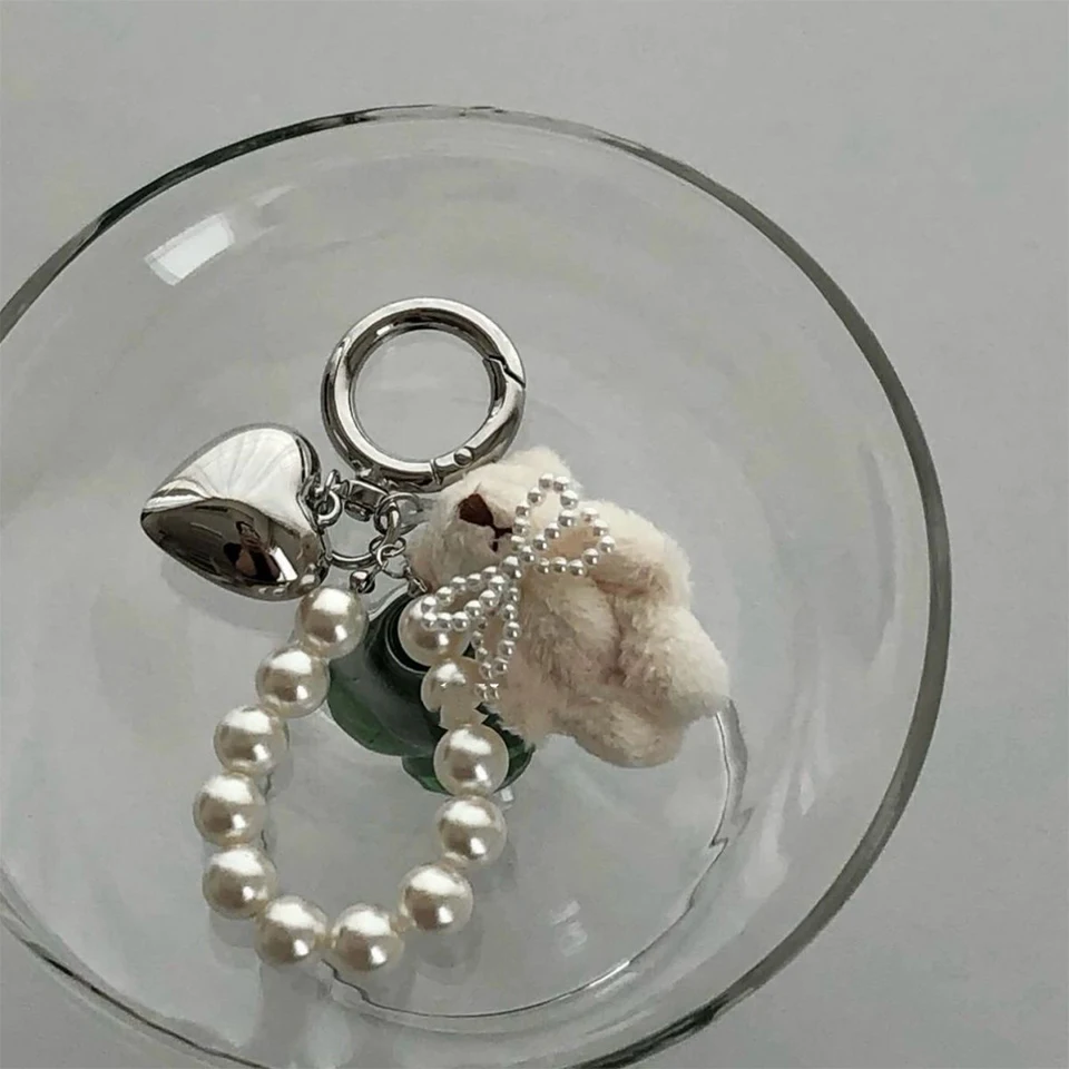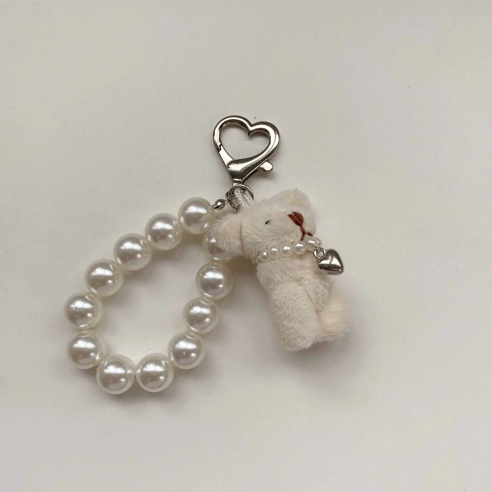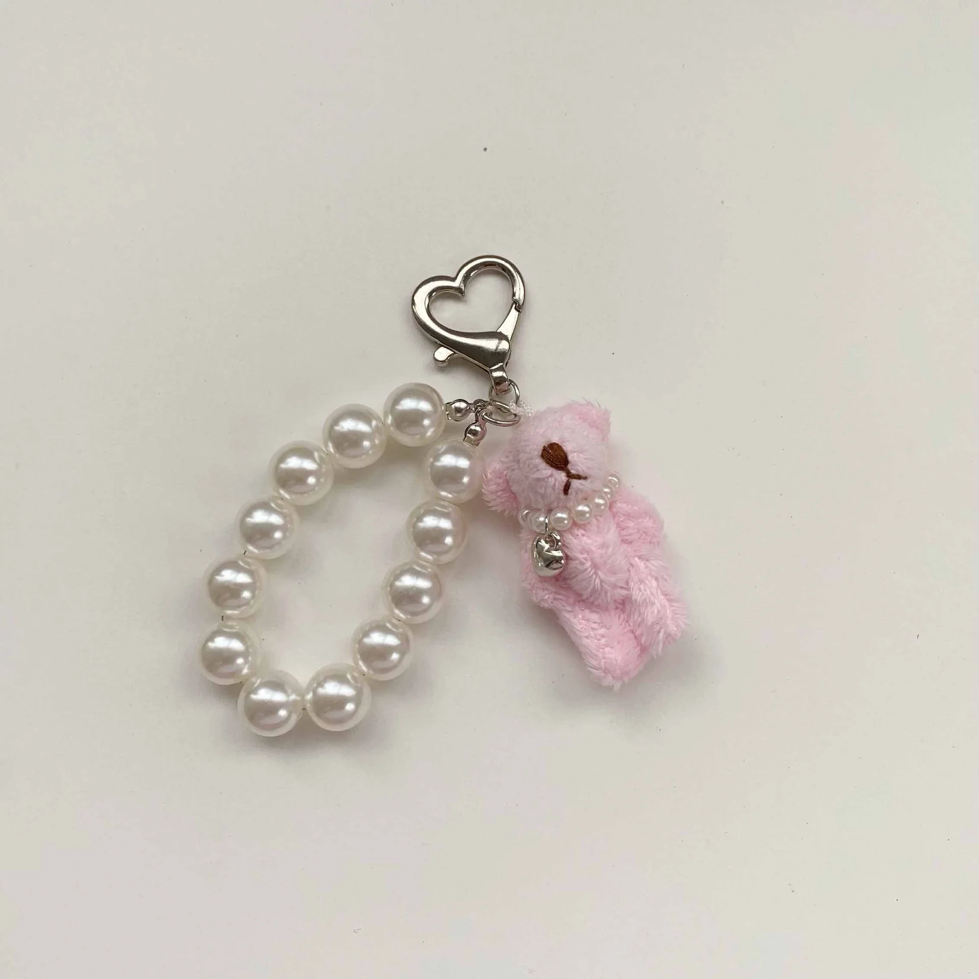 ZAKOL Korean Fashion Imitation Pearl Bear Doll Pendant Keychain Handbag Mobile Phone Accessories Gift for Women Girls