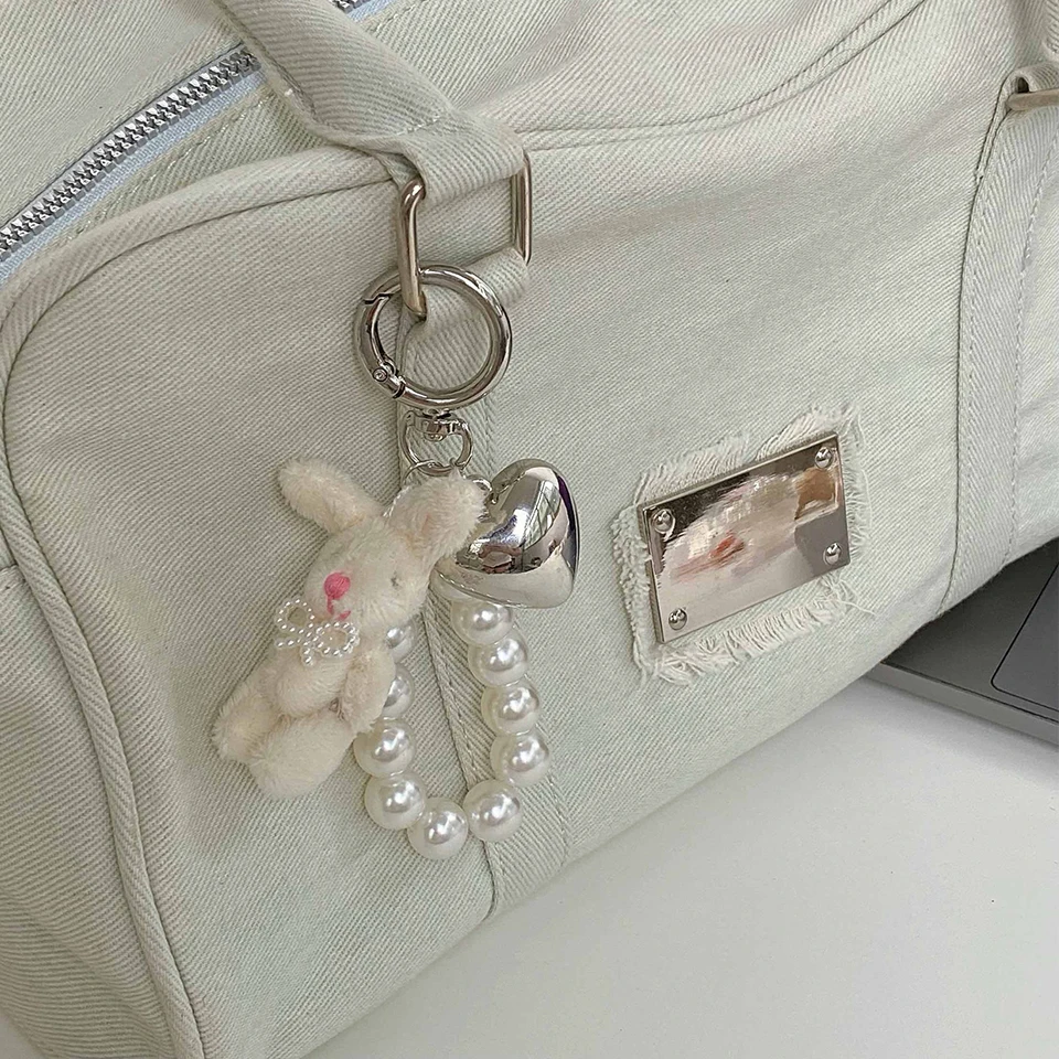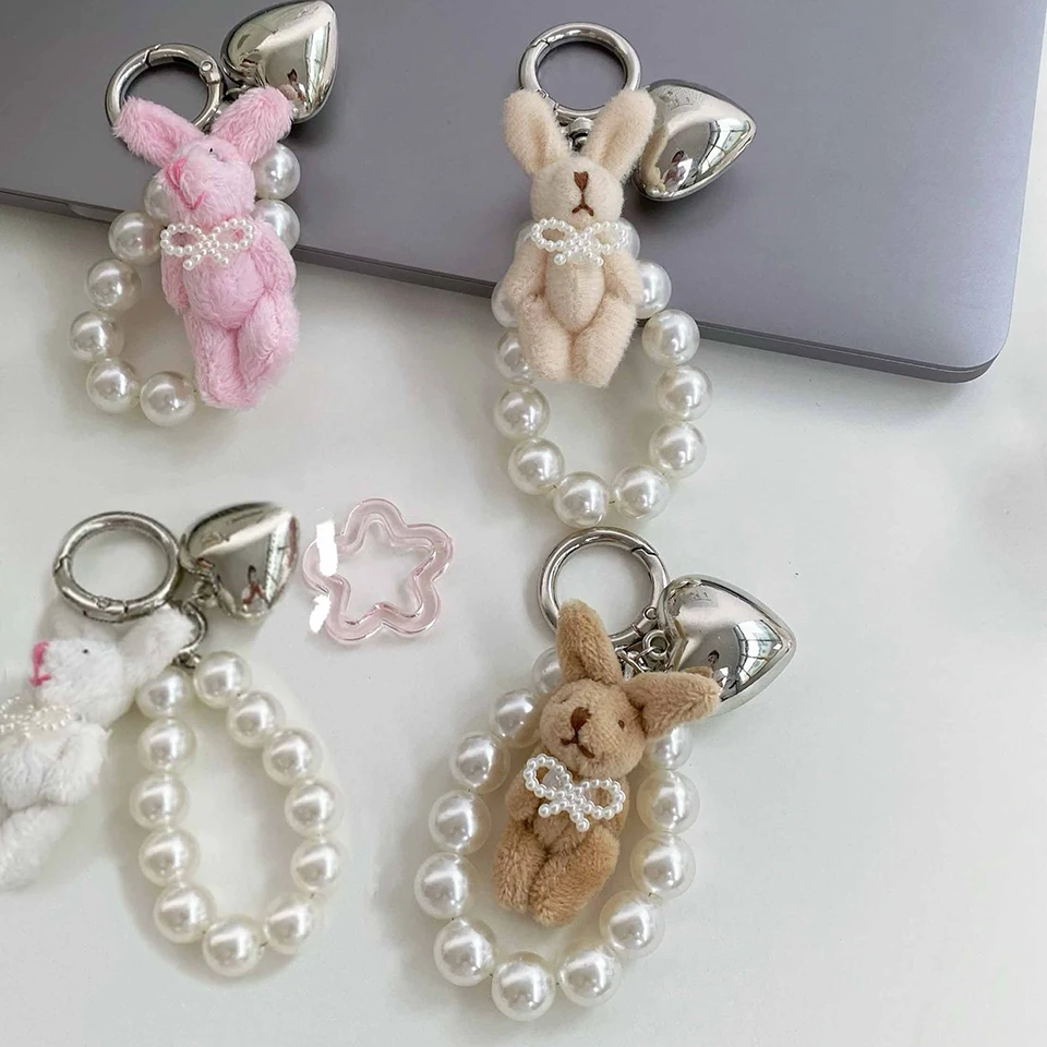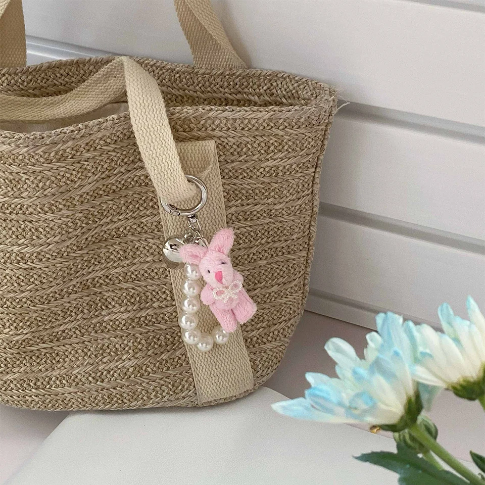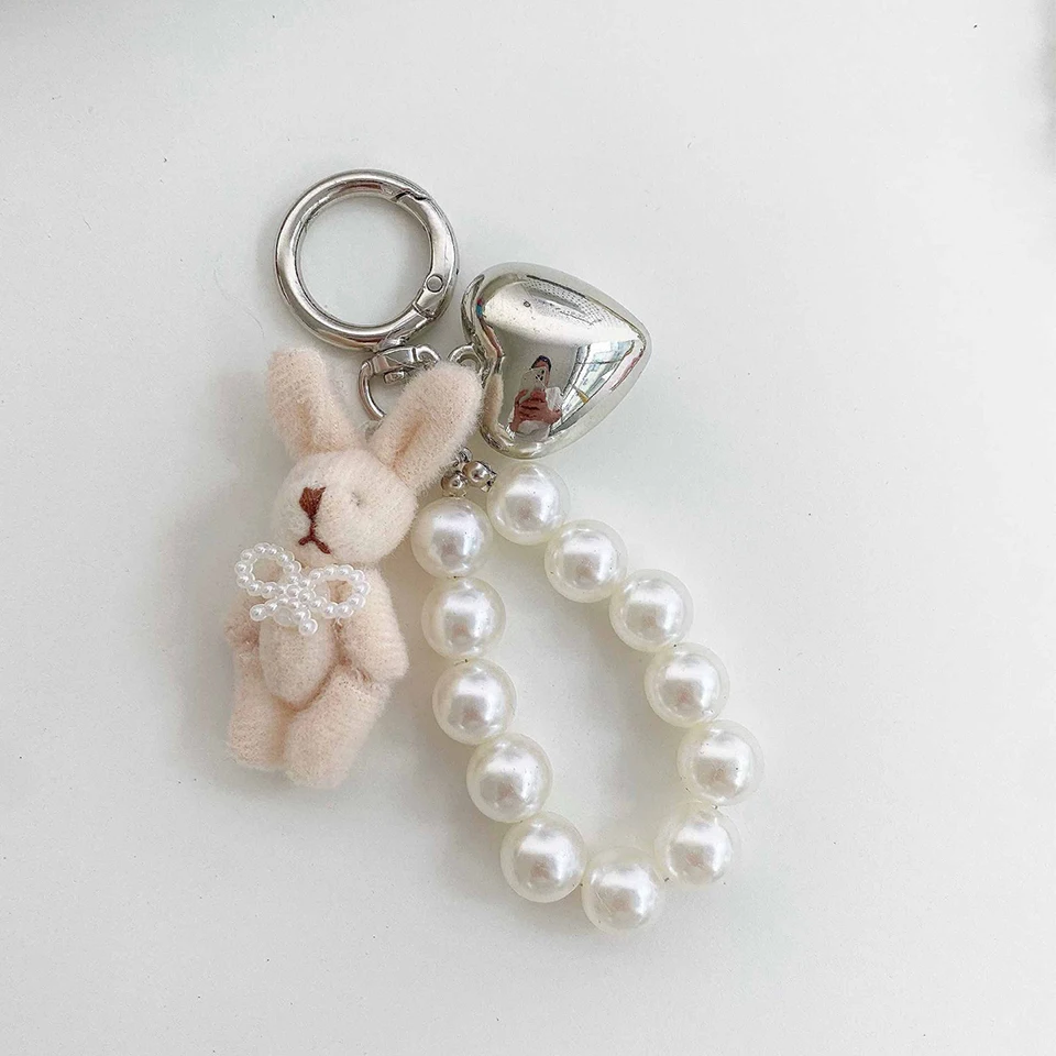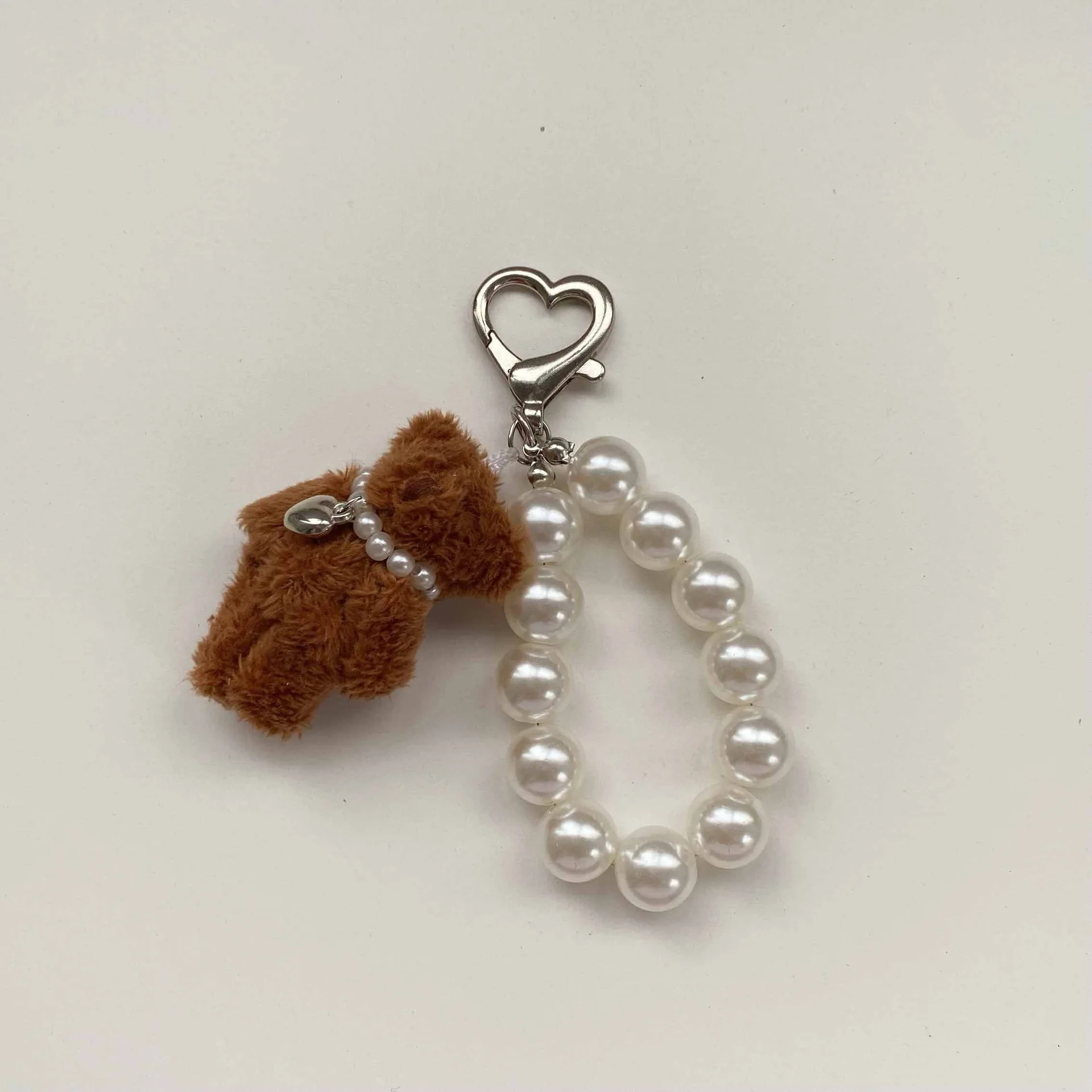 ZAKOL Korean Fashion Imitation Pearl Bear Doll Pendant Keychain Handbag Mobile Phone Accessories Gift for Women Girls