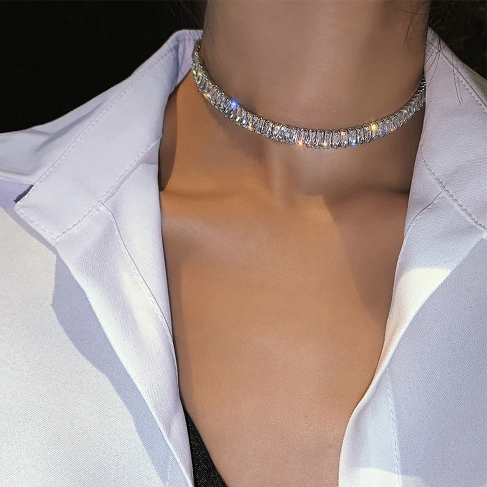 ZAKOL Korean Fashion Rectangle Zircon Choker Necklaces for Women Luxury Clear Geometric CZ Sexy Banquet Party Jewelry
