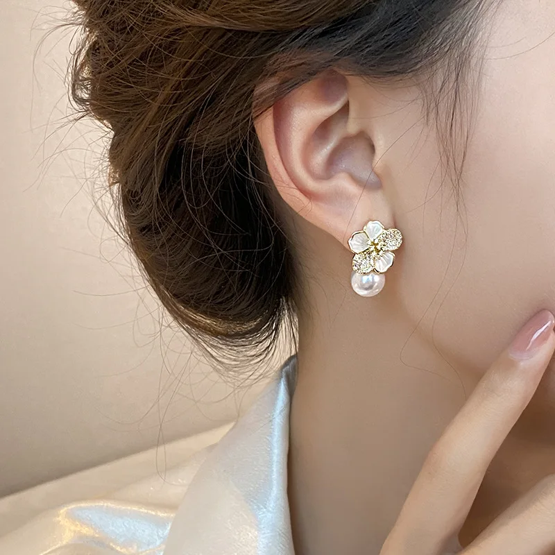 Be the first to review “ZAKOL Luxury Micro Set Zircon White Enamel Camellia Pearl Pendant Earrings for Women Exquisite Party Ear Accessories” Cancel reply