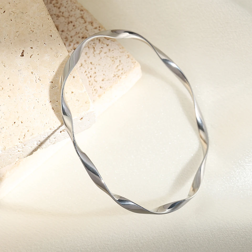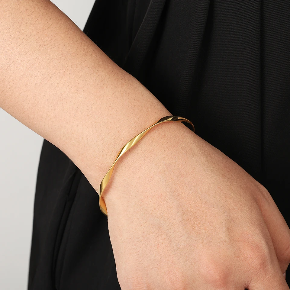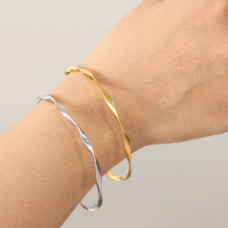 ZAKOL Waterproof Stainless Steel Cuff Bracelet Bangles for Women Smooth Metal Openable Bracelets Jewelry Gift