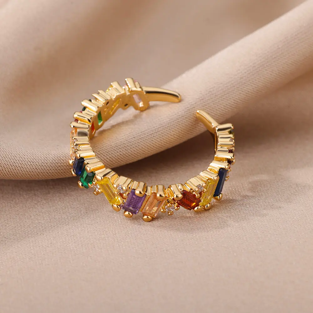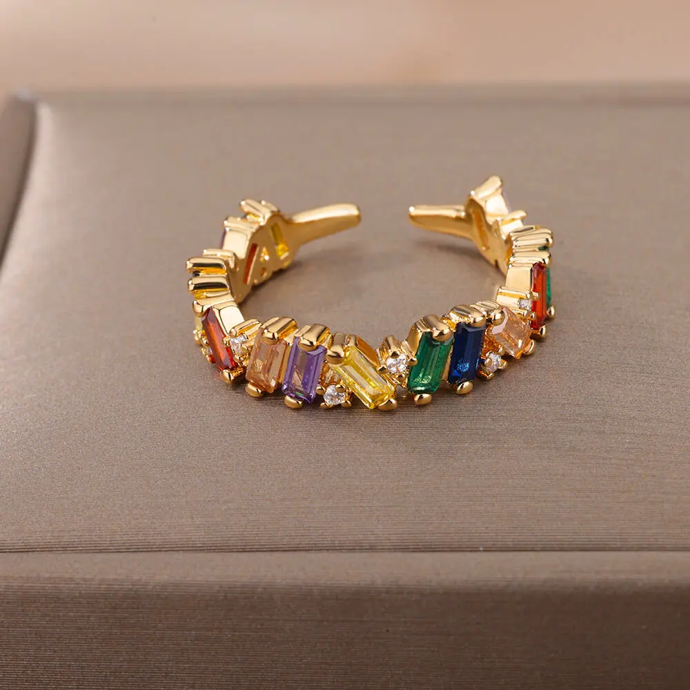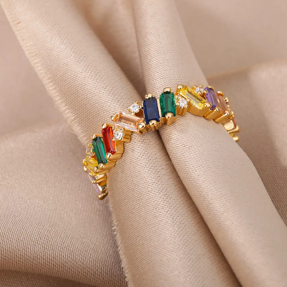 Zircon Crystal Stone Rainbow Rings For Women Stainless Steel Gold Plated Wedding Couple Ring Christmas Jewelry Gift Bijoux Femme