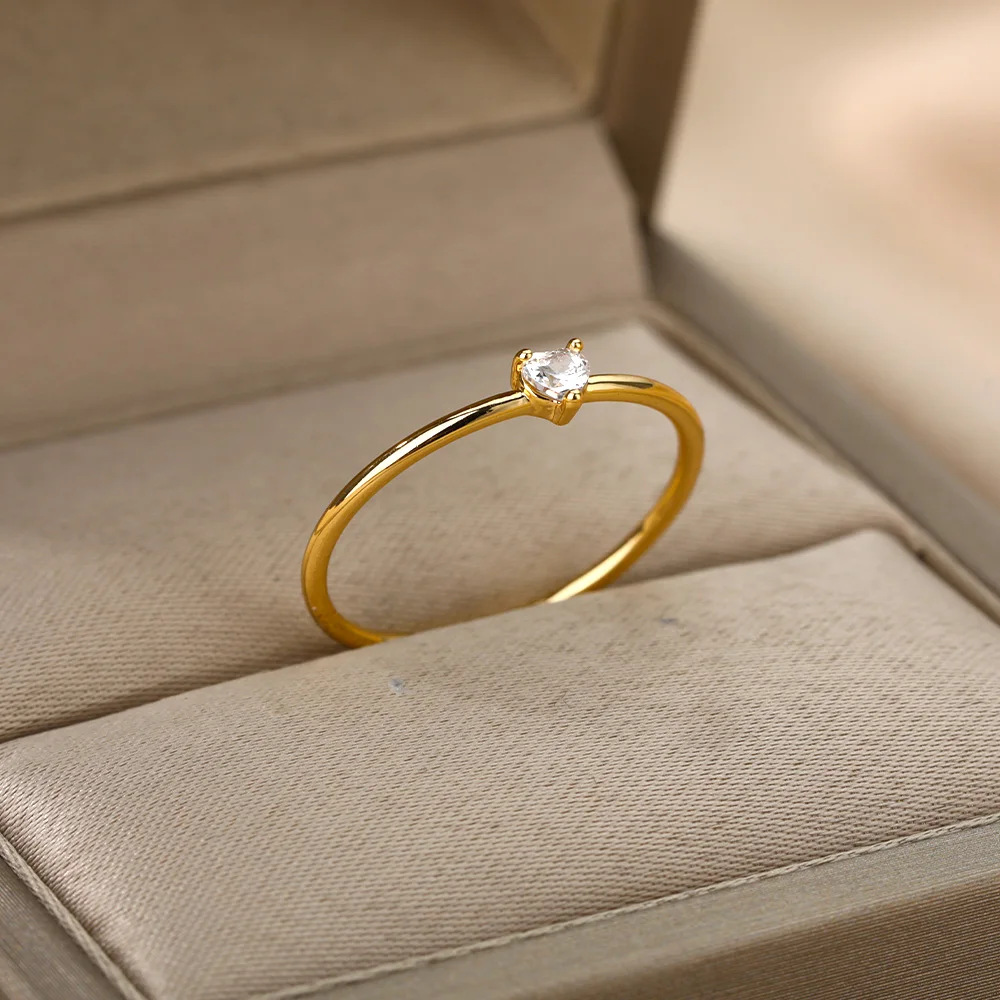 Zircon Little Heart Rings For Women Minimalism Heart Ring Stainless Steel Gold Finger Dainty Ring Wedding Gifts For Girlfriend