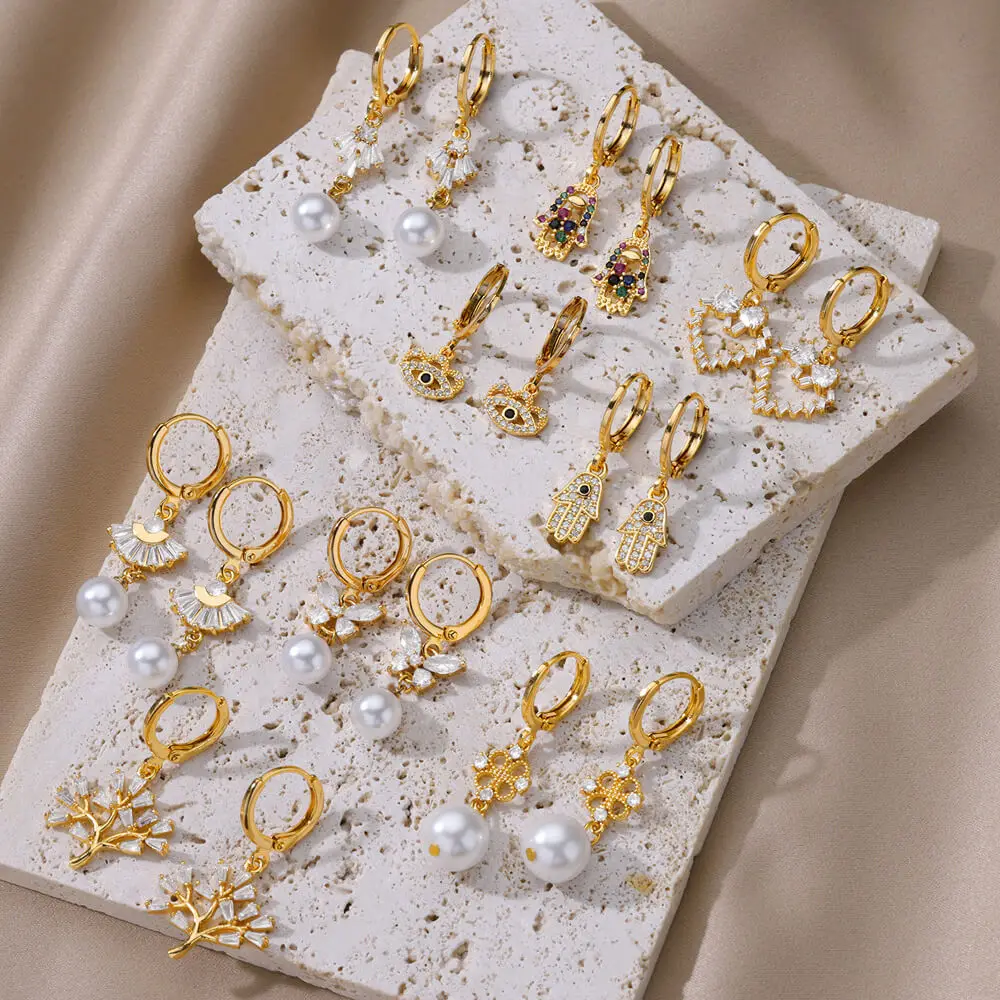 32 reviews for Zircon Natural Pearl Earrings For Women Gold Plated Stainless Steel Geometric Hoop Pearl Earring Wedding Bridesmaid Jewelry Gift