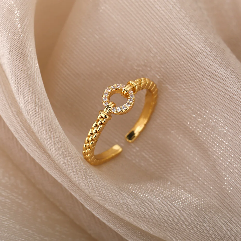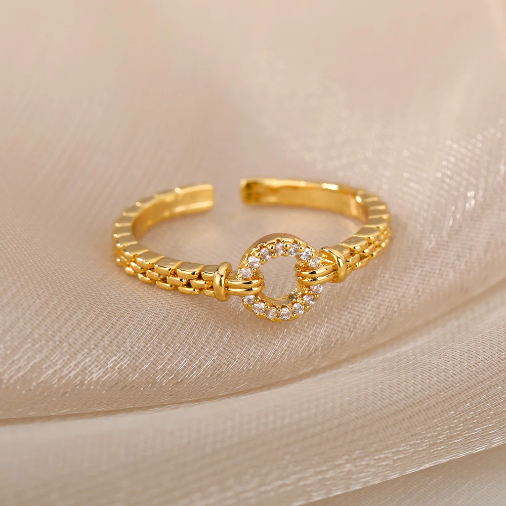 Zircon Round Rings For Women Punk Rock Chain Round Open Adjusted Stainless Steel Ring Accessories Jewelry Gift Bijoux Femme