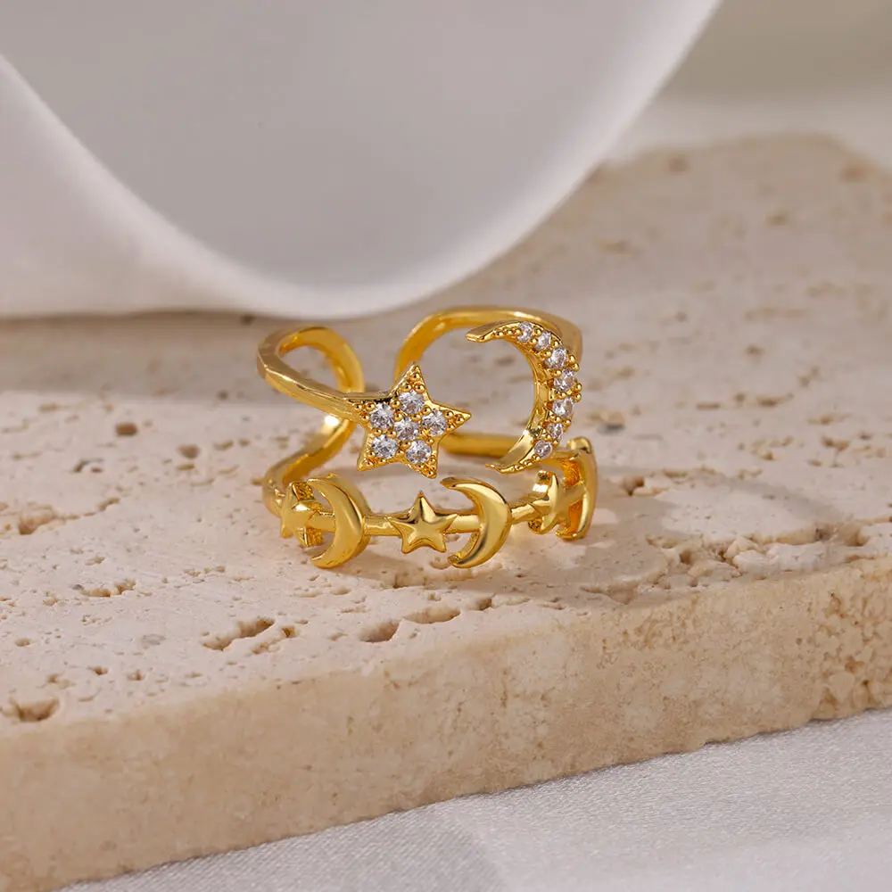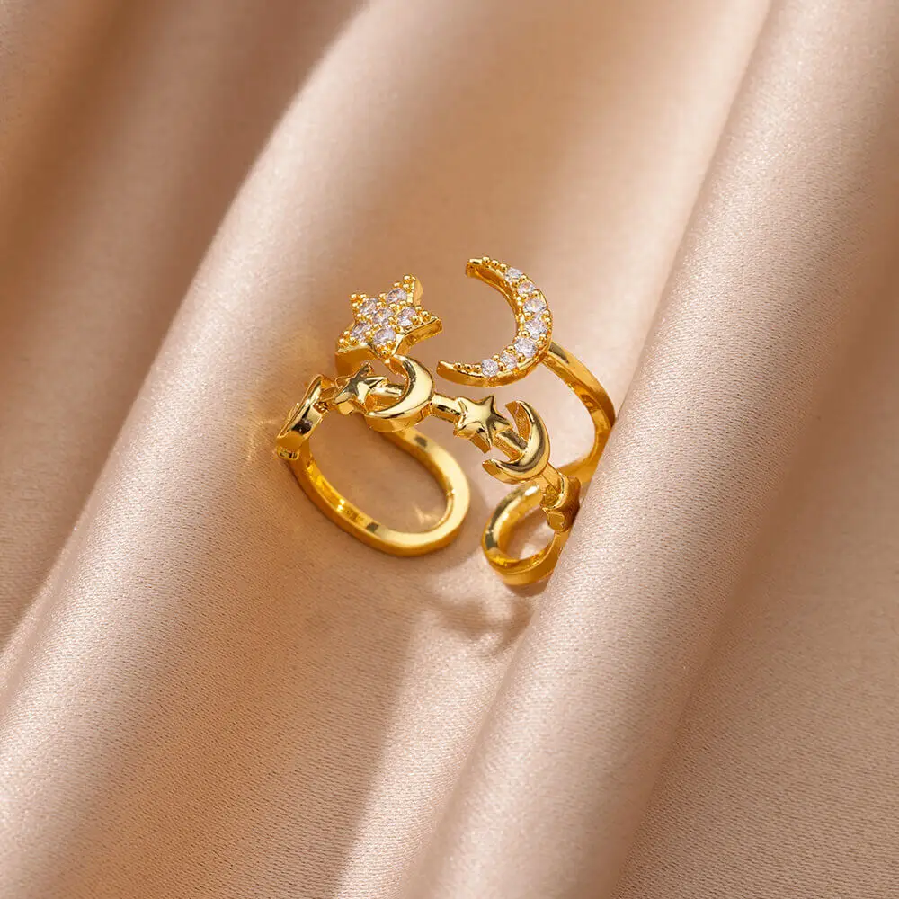 25 reviews for Zircon Star Moon Rings For Women Gold Color Adjustable Stainless Steel Moon Star Ring Wedding Aesthetic Party Jewelry Gift BFF