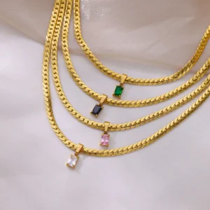 Vintage Square Zircon Thick Chain Necklace For Women Stainless Steel Gold Color Choker Necklace Wedding Waterproof Jewelry Gift