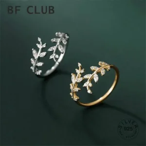 Real 925 Sterling Silver Zircon Leaves Adjustable Ring For Charming Women Minimalist Fine Jewelry Punk Accessories