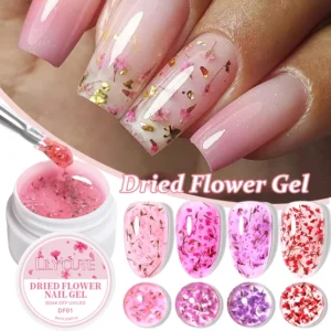 LILYCUTE 8ml Pink Dried Flower Gel Nail Polish Natural Flower Fairy Nail Art Gel Soak Off UV LED Painting Varnish For Nails DIY